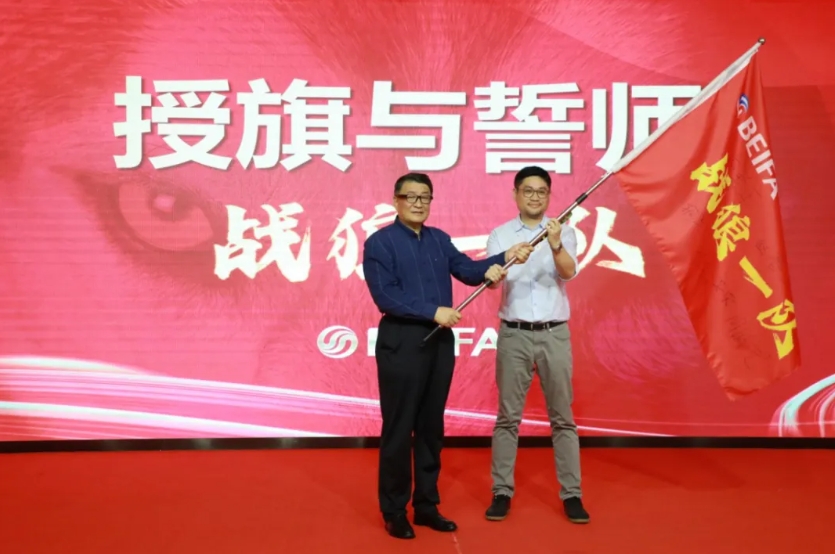 5月9日,贝发集团在世界之窗举行“战狼一队”越南出征仪式,邱智铭董事长率高管团队为18名出征将士壮行。这场“狼性破局”的动员大会,吹响了贝发海外智造体系建设的冲锋号。